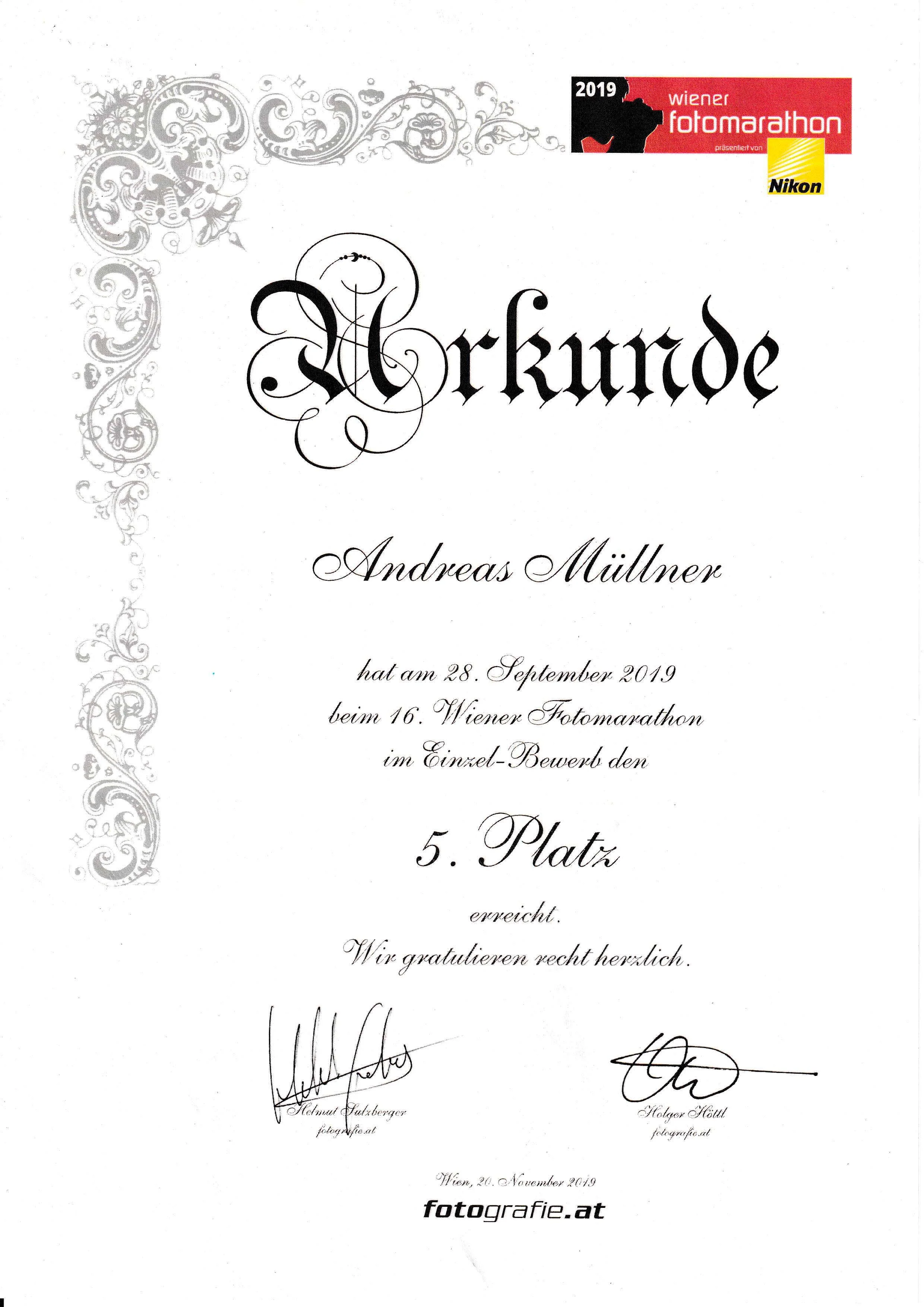 5. Platz beim Wiener Fotomarathon 2019